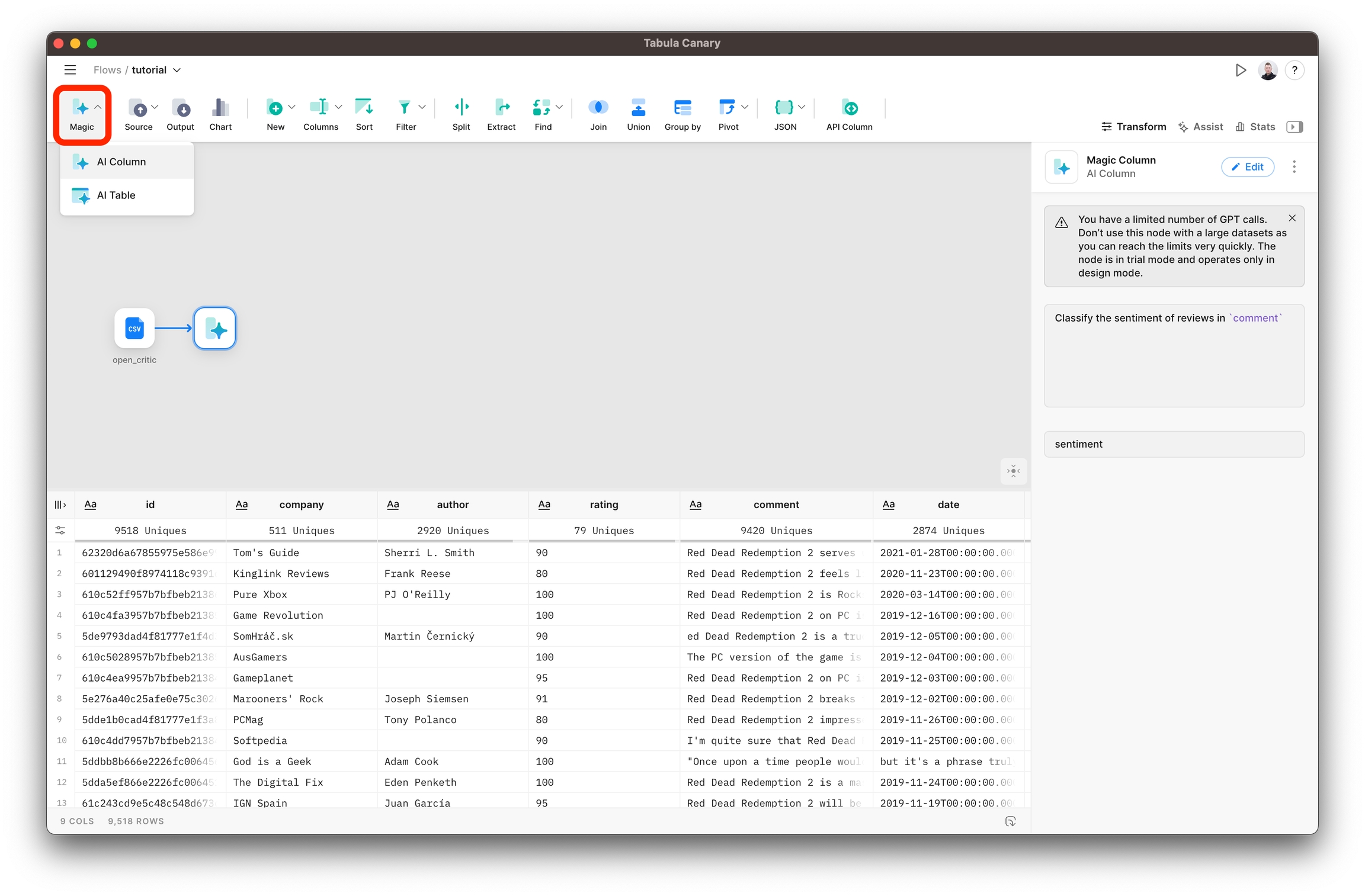 By adding AI Table Node, you can execute complex transformations over single or multiple tables with just a natural language prompt. It is a revolutionary productivity tool designed to simplify the creation of complex data transformations - it allows you to condense multiple transformation steps into a single node.