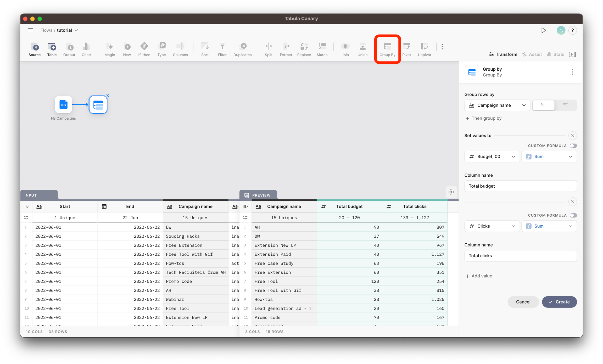 Predefined aggregation functions. Follow these steps: