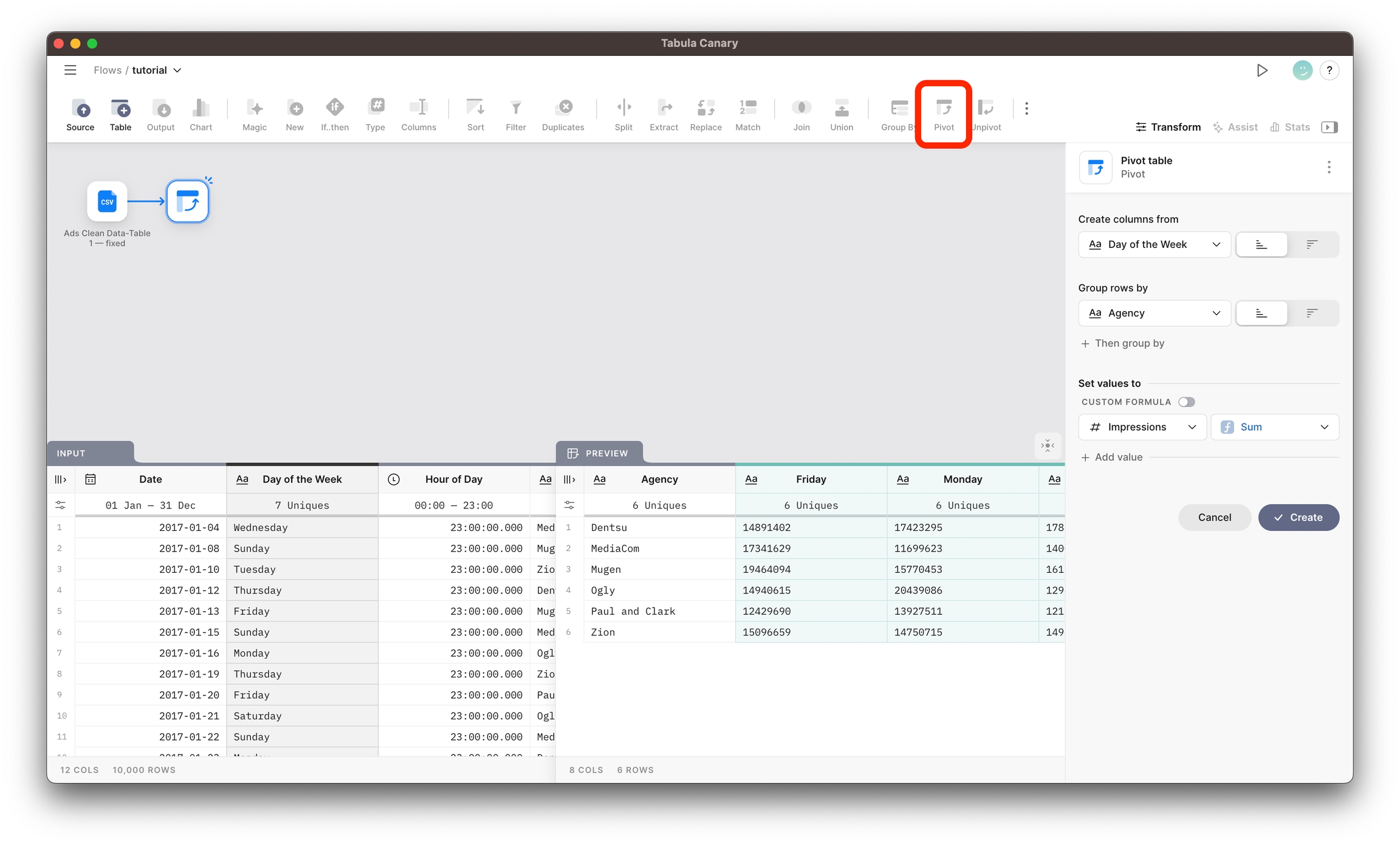 The Pivot Node allows you to convert rows into columns and computes aggregate functions as values for the new columns. This transformation is particularly useful for creating cross-tabular views, making comparing and contrasting different data dimensions easier.