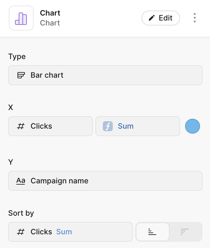 As an example, let’s start with creating a visual dashboard out of our dataset. To begin chart creation in Tomat, select the Chart node and specify the axes that will represent your data. This intuitive process allows you to choose the most relevant variables to visualize. Upon completion, Tomat generates a dashboard displaying the chart based on your specifications.