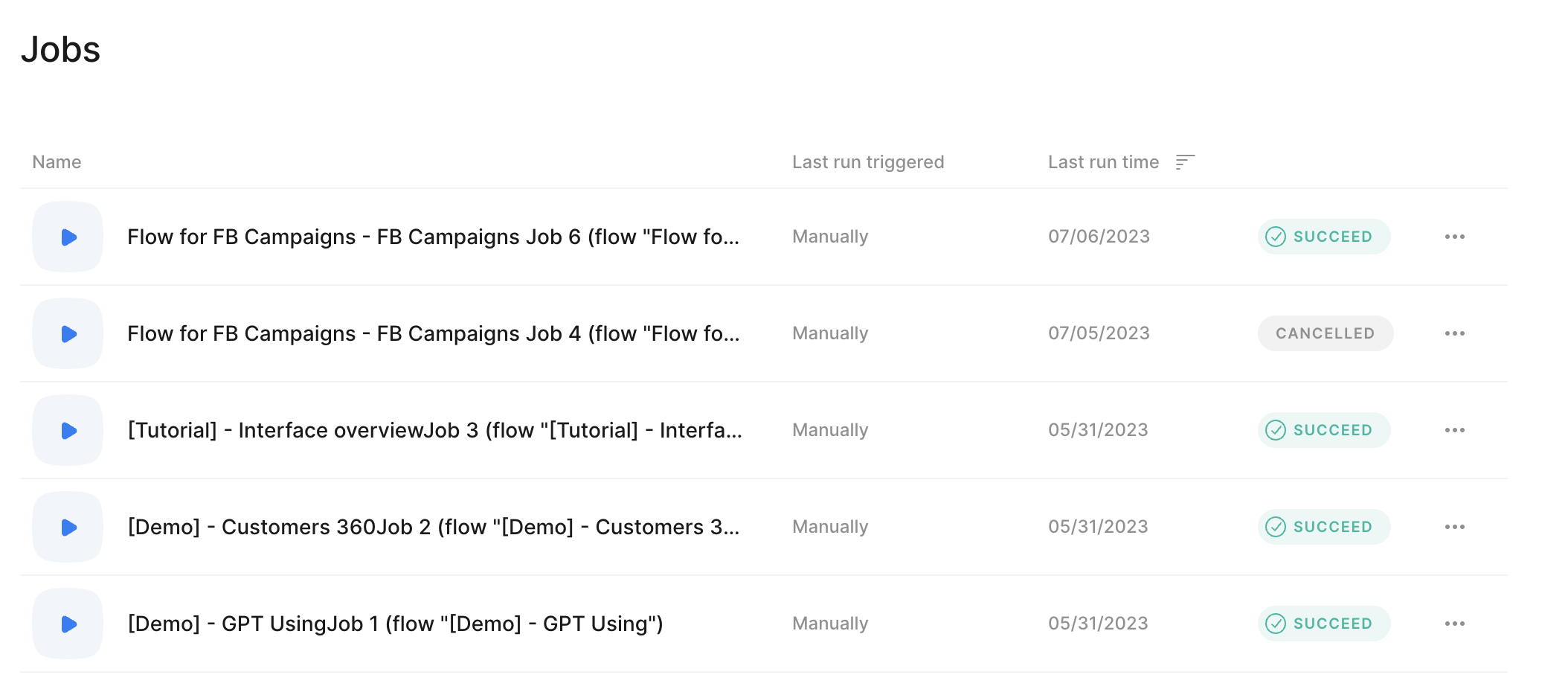 Jobs are the list of your completed data analytics tasks. It's like a folder with final reports.
